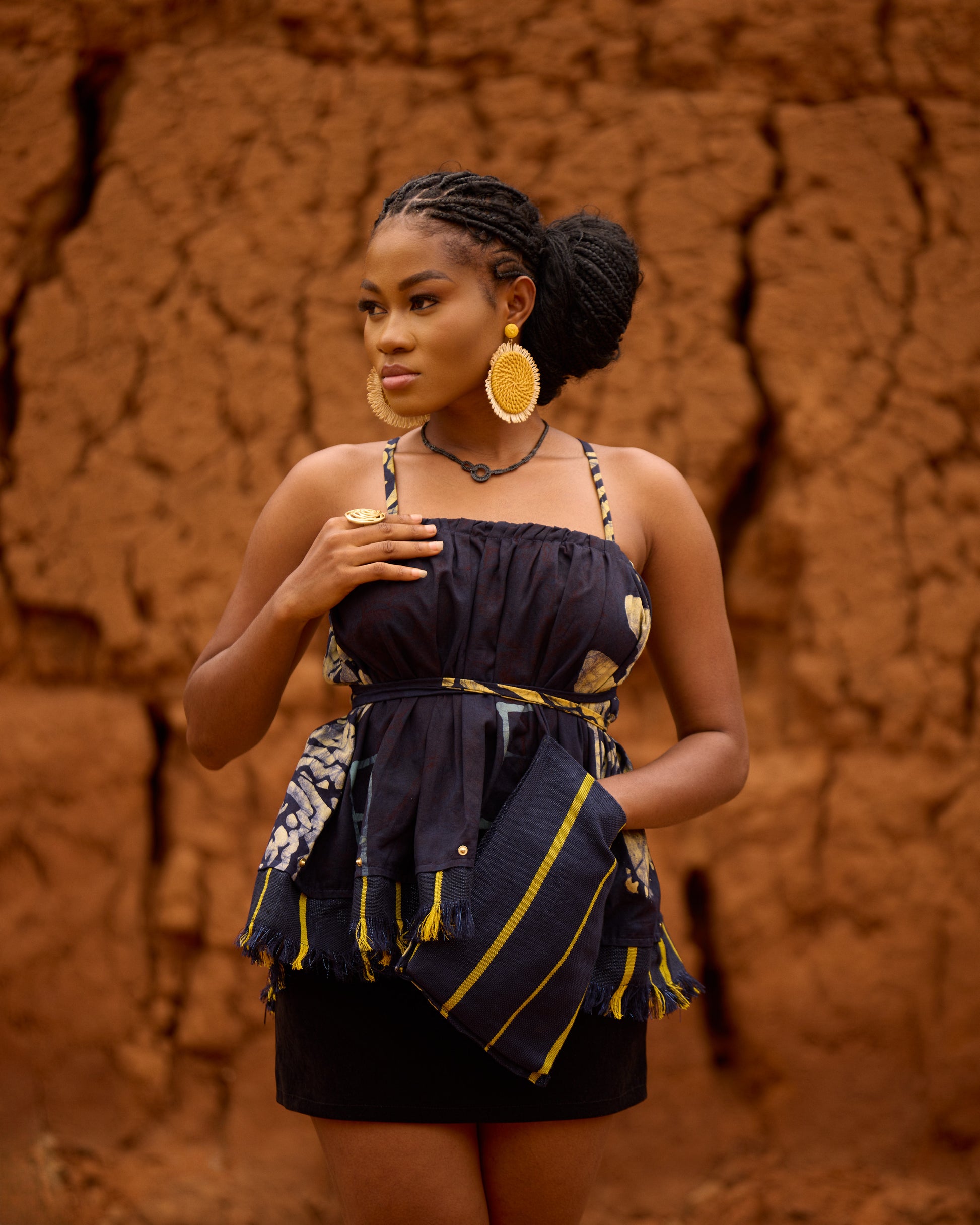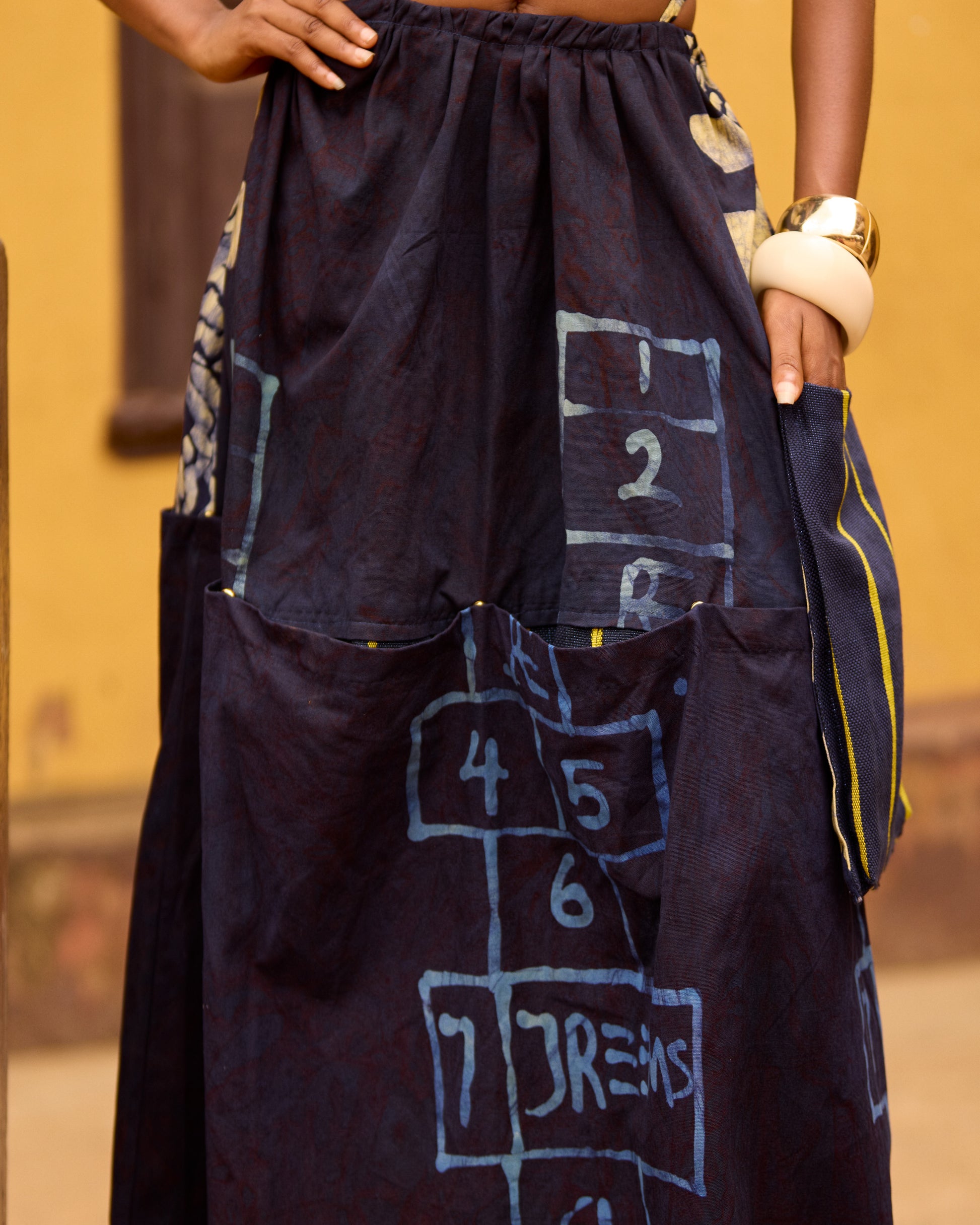 Proudly made in Nigeria, it combines the rich heritage of artisan-dyed Adire with clean, modern tailoring. A playful, stylish piece designed for endless fun.